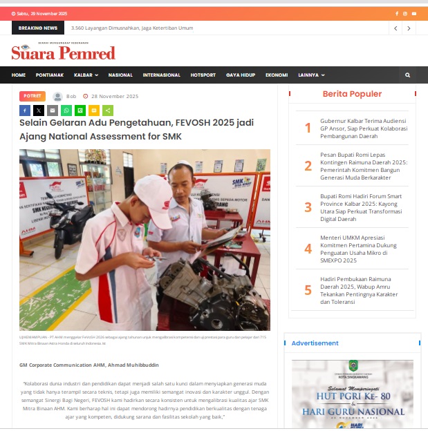 Selain Gelaran Adu Pengetahuan, FEVOSH 2025 jadi Ajang National Assessment for SMK by masmul 28 November 2025 in Silahkan kunjungi https://www.suarapemredkalbar.com/read/potret/28112025/selain-gelaran-adu-pengetahuan-fevosh-2025-jadi-ajang-national-assessment-for-smk. You Might Like Regional Public Launching New ADV160 The SUV Pride Grand Launching New PCX 160 Truly Exceptional! Tetap hati-hati ya bro sist berkendara saat hujan.