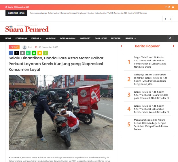 Selalu Dinantikan, Honda Care Astra Motor Kalbar Perkuat Layanan Servis Kunjung yang Diapresiasi Konsumen Loyal by masmul 3 November 2025 in Silahkan kunjungi https://www.suarapemredkalbar.com/read/potret/03112025/selalu-dinantikan-honda-care-astra-motor-kalbar-perkuat-layanan-servis-kunjung-yang-diapresiasi-konsumen-loyal. You Might Like Regional Public Launching New ADV160 The SUV Pride Grand Launching New PCX 160 Truly Exceptional! Tetap hati-hati ya bro sist berkendara saat hujan.