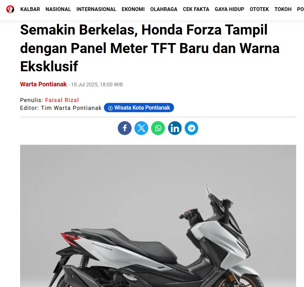 Semakin Berkelas, Honda Forza Tampil dengan Panel Meter TFT Baru dan Warna Eksklusif by Faisal Rizal 18 Juli 2025 in Silahkan kunjungi https://wartapontianak.pikiran-rakyat.com/gaya-hidup/pr-1179504147/semakin-berkelas-honda-forza-tampil-dengan-panel-meter-tft-baru-dan-warna-eksklusif. You Might Like Regional Public Launching New ADV160 The SUV Pride Grand Launching New PCX 160 Truly Exceptional! Tetap hati-hati ya bro sist berkendara saat hujan.