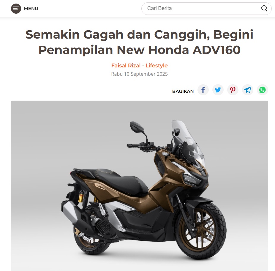 Semakin Gagah dan Canggih, Begini Penampilan New Honda ADV160 by Dodi Dodi 10 September 2025 in Silahkan kunjungi https://harianberkat.com/2025/09/10/semakin-gagah-dan-canggih-begini-penampilan-new-honda-adv160/. You Might Like Regional Public Launching New ADV160 The SUV Pride Grand Launching New PCX 160 Truly Exceptional! Tetap hati-hati ya bro sist berkendara saat hujan.