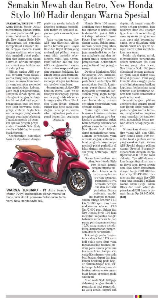Semakin Mewah dan Retro, New HondaStylo 160 Hadir dengan Warna Spesial by Nina Soraya 8 April 2026 in Silahkan buka . You Might Like Regional Public Launching New ADV160 The SUV Pride Grand Launching New PCX 160 Truly Exceptional! Tetap hati-hati ya bro sist berkendara saat hujan.