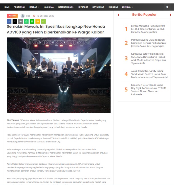 Semakin Mewah, Ini Spesifikasi Lengkap New Honda ADV160 yang Telah Diperkenalkan ke Warga Kalbar by masmul 12 Oktober 2025 in Silahkan kunjungi https://www.suarapemredkalbar.com/read/potret/12102025/semakin-mewah-ini-spesifikasi-lengkap-new-honda-adv160-yang-telah-diperkenalkan-ke-warga-kalbar. You Might Like Regional Public Launching New ADV160 The SUV Pride Grand Launching New PCX 160 Truly Exceptional! Tetap hati-hati ya bro sist berkendara saat hujan.
