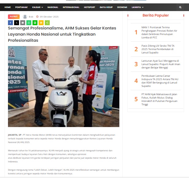 Semangat Profesionalisme, AHM Sukses Gelar Kontes Layanan Honda Nasional untuk Tingkatkan Profesionalitas by masmul 9 Oktober 2025 in Silahkan kunjungi https://www.suarapemredkalbar.com/read/potret/09102025/semangat-profesionalisme-ahm-sukses-gelar-kontes-layanan-honda-nasional-untuk-tingkatkan-profesionalitas. You Might Like Regional Public Launching New ADV160 The SUV Pride Grand Launching New PCX 160 Truly Exceptional! Tetap hati-hati ya bro sist berkendara saat hujan.