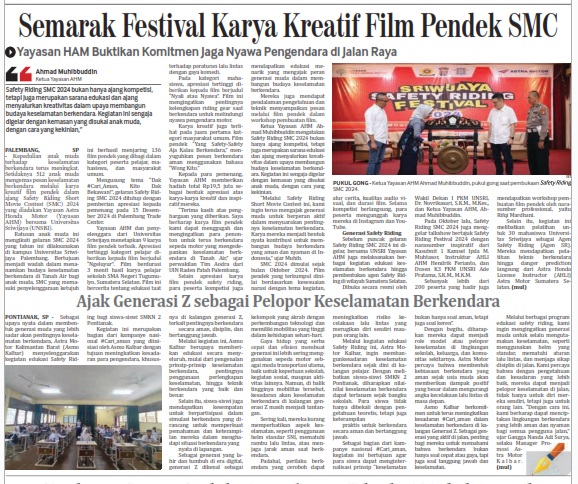 Semarak Festival Karya Kreatif Film Pendek SMC, Yayasan AHM Buktikan Komietmen Jaga Nyawa di Jalan Raya by masmul 7 Januari 2025 in Silahkan buka . You Might Like Regional Public Launching New ADV160 The SUV Pride Grand Launching New PCX 160 Truly Exceptional! Tetap hati-hati ya bro sist berkendara saat hujan.