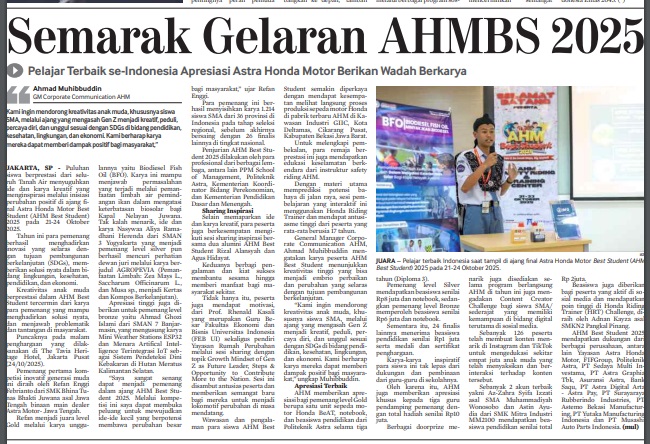 Semarak Gelaran AHMBS 2025, Pelajar Terbaik se-Indonesia Apresiasi Astra Honda Motor Berikan Wadah Berkarya by masmul 29 Oktober 2025 in Silahkan buka . You Might Like Regional Public Launching New ADV160 The SUV Pride Grand Launching New PCX 160 Truly Exceptional! Tetap hati-hati ya bro sist berkendara saat hujan.