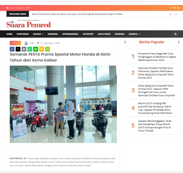 Semarak PESTA Promo Spesial Motor Honda di Akhir Tahun dari Asmo Kalbar by masmul 11 Desember 2025 in Silahkan kunjungi https://www.suarapemredkalbar.com/read/potret/11122025/semarak-pesta-promo-spesial-motor-honda-di-akhir-tahun-dari-asmo-kalbar. You Might Like Regional Public Launching New ADV160 The SUV Pride Grand Launching New PCX 160 Truly Exceptional! Tetap hati-hati ya bro sist berkendara saat hujan.