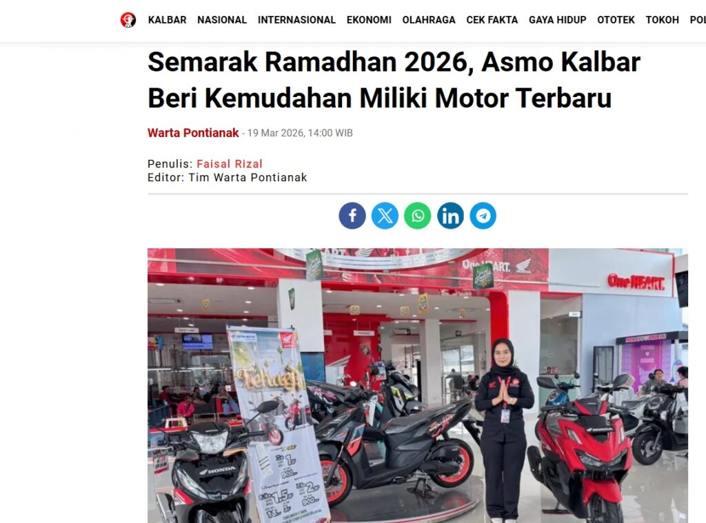 Semarak Ramadhan 2026, Asmo Kalbar Beri Kemudahan Miliki Motor Terbaru by Faisal Rizal 19 Maret 2026 in Silahkan kunjungi https://wartapontianak.pikiran-rakyat.com/gaya-hidup/pr-11710087672/semarak-ramadhan-2026-asmo-kalbar-beri-kemudahan-miliki-motor-terbaru. You Might Like Regional Public Launching New ADV160 The SUV Pride Grand Launching New PCX 160 Truly Exceptional! Tetap hati-hati ya bro sist berkendara saat hujan.