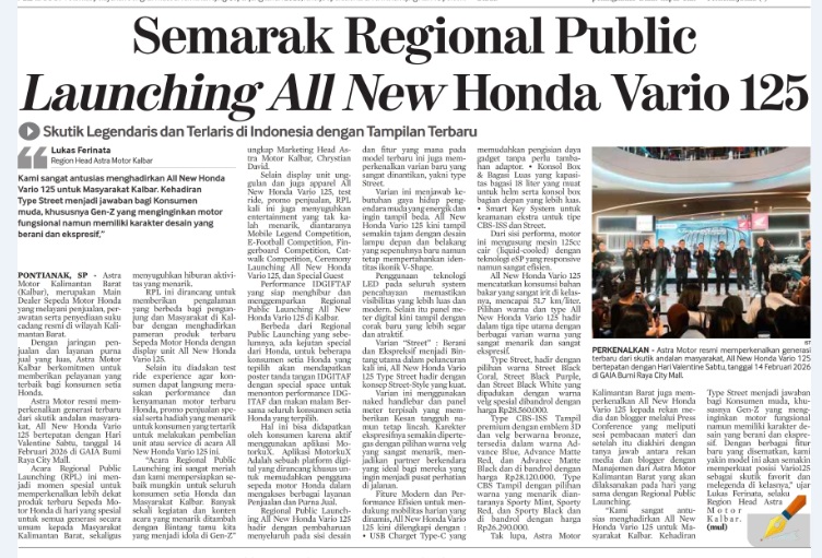Semarak Regional Public Launching All New Honda Vario 125, Skutik Legendaris dan Terlaris di Indonesia dengan Tampilan Terbaru by masmul 21 Februari 2026 in Silahkan buka . You Might Like Regional Public Launching New ADV160 The SUV Pride Grand Launching New PCX 160 Truly Exceptional! Tetap hati-hati ya bro sist berkendara saat hujan.