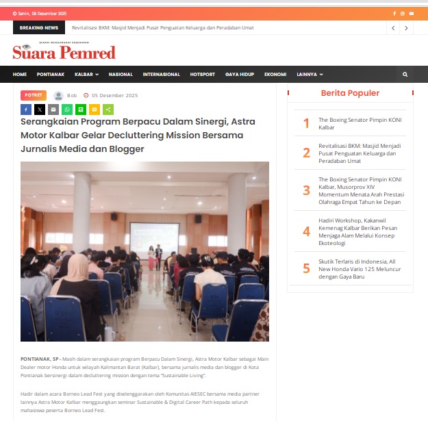 Serangkaian Program Berpacu Dalam Sinergi, Astra Motor Kalbar Gelar Decluttering Mission Bersama Jurnalis Media dan Blogger by masmul 5 Desember 2025 in Silahkan kunjungi https://www.suarapemredkalbar.com/read/potret/05122025/serangkaian-program-berpacu-dalam-sinergi-astra-motor-kalbar-gelar-decluttering-mission-bersama-jurnalis-media-dan-blogger. You Might Like Regional Public Launching New ADV160 The SUV Pride Grand Launching New PCX 160 Truly Exceptional! Tetap hati-hati ya bro sist berkendara saat hujan.