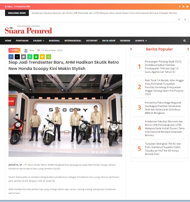 Siap Jadi Trendsetter Baru, AHM Hadikan Skutik Retro New Honda Scoopy Kini Makin Stylish by masmul 14 November 2025 in Silahkan kunjungi https://www.suarapemredkalbar.com/read/potret/14112025/siap-jadi-trendsetter-baru-ahm-hadikan-skutik-retro-new-honda-scoopy-kini-makin-stylish. You Might Like Regional Public Launching New ADV160 The SUV Pride Grand Launching New PCX 160 Truly Exceptional! Tetap hati-hati ya bro sist berkendara saat hujan.