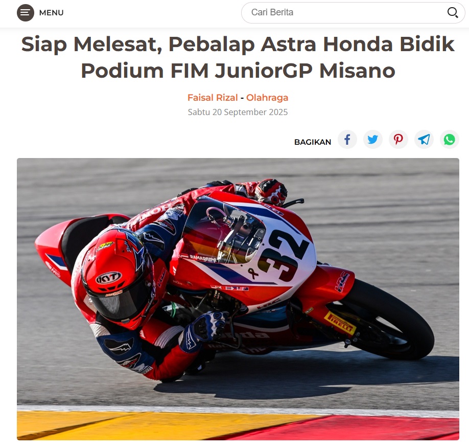 Siap Melesat, Pebalap Astra Honda Bidik Podium FIM JuniorGP Misano by Dodi Dodi 20 September 2025 in Silahkan kunjungi https://harianberkat.com/2025/09/20/siap-melesat-pebalap-astra-honda-bidik-podium-fim-juniorgp-misano/. You Might Like Regional Public Launching New ADV160 The SUV Pride Grand Launching New PCX 160 Truly Exceptional! Tetap hati-hati ya bro sist berkendara saat hujan.