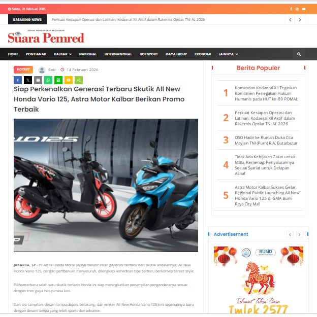 Siap Perkenalkan Generasi Terbaru Skutik All New Honda Vario 125, Astra Motor Kalbar Berikan Promo Terbaik by masmul 14 Februari 2026 in Silahkan kunjungi https://www.suarapemredkalbar.com/read/potret/14022026/siap-perkenalkan-generasi-terbaru-skutik-all-new-honda-vario-125-astra-motor-kalbar-berikan-promo-terbaik. You Might Like Regional Public Launching New ADV160 The SUV Pride Grand Launching New PCX 160 Truly Exceptional! Tetap hati-hati ya bro sist berkendara saat hujan.