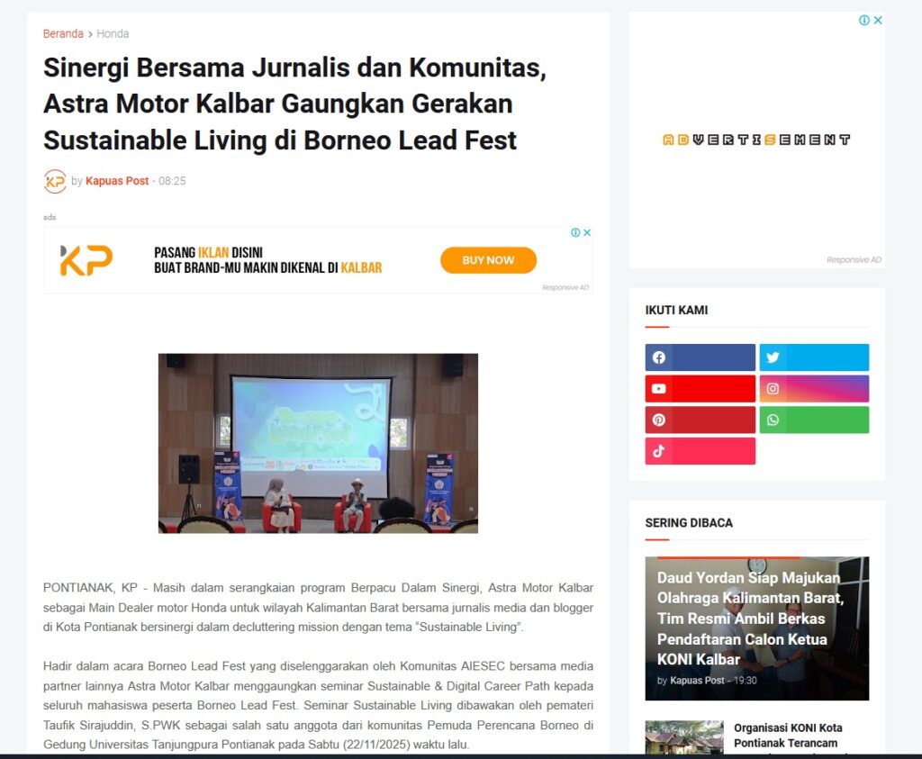 Sinergi Bersama Jurnalis dan Komunitas, Astra Motor Kalbar Gaungkan Gerakan Sustainable Living di Borneo Lead Fest by Muhammad Arif 3 Desember 2025 in Silahkan kunjungi https://www.kapuaspost.web.id/2025/12/sinergi-bersama-jurnalis-dan-komunitas.html. Tags: astra Astra Motor kalbar Astra Motor Pontianak astramotor honda kalbar pontianak sepeda motor You Might Like Regional Public Launching New ADV160 The SUV Pride Grand Launching New PCX 160 Truly Exceptional! Tetap hati-hati ya bro sist berkendara saat hujan.