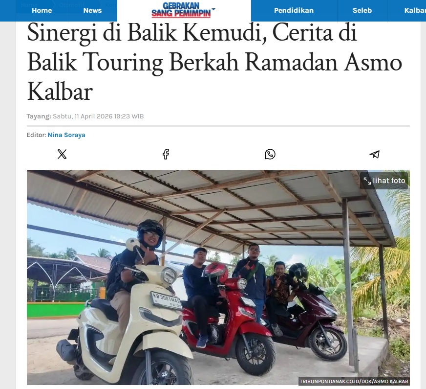 Sinergi di Balik Kemudi, Cerita di Balik Touring Berkah Ramadan Asmo Kalbar by Nina Soraya 11 April 2026 in Silahkan kunjungi https://pontianak.tribunnews.com/otomotif/1168496/sinergi-di-balik-kemudi-cerita-di-balik-touring-berkah-ramadan-asmo-kalbar. You Might Like Regional Public Launching New ADV160 The SUV Pride Grand Launching New PCX 160 Truly Exceptional! Tetap hati-hati ya bro sist berkendara saat hujan.