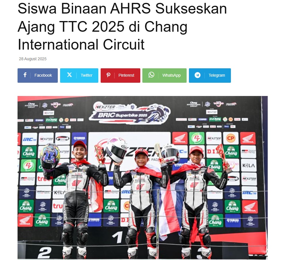Siswa Binaan AHRS Sukseskan Ajang TTC 2025 di Chang International Circuit by Nova Sari 28 Agustus 2025 in Silahkan kunjungi https://equator.co.id/siswa-binaan-ahrs-sukseskan-ajang-ttc-2025-di-chang-international-circuit/. You Might Like Regional Public Launching New ADV160 The SUV Pride Grand Launching New PCX 160 Truly Exceptional! Tetap hati-hati ya bro sist berkendara saat hujan.