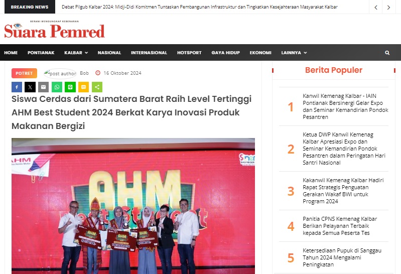 Siswa Cerdas dari Sumatera Barat Raih Level Tertinggi AHM Best Student 2024 Berkat Karya Inovasi Produk Makanan Bergizi by masmul 16 Oktober 2024 in Silahkan kunjungi https://www.suarapemredkalbar.com/read/potret/16102024/siswa-cerdas-dari-sumatera-barat-raih-level-tertinggi-ahm-best-student-2024-berkat-karya-inovasi-produk-makanan-bergizi-1. You Might Like Regional Public Launching New ADV160 The SUV Pride Grand Launching New PCX 160 Truly Exceptional! Tetap hati-hati ya bro sist berkendara saat hujan.