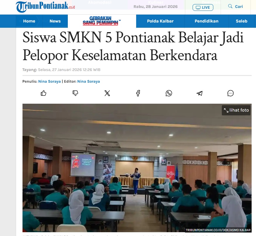 Siswa SMKN 5 Pontianak Belajar Jadi Pelopor Keselamatan Berkendara by Nina Soraya 27 Januari 2026 in Silahkan kunjungi https://pontianak.tribunnews.com/metropolis/1159638/siswa-smkn-5-pontianak-belajar-jadi-pelopor-keselamatan-berkendara. You Might Like Regional Public Launching New ADV160 The SUV Pride Grand Launching New PCX 160 Truly Exceptional! Tetap hati-hati ya bro sist berkendara saat hujan.