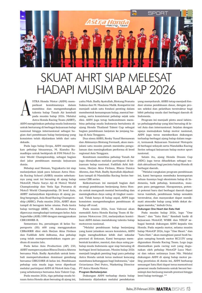 “SKUAT AHRT SIAP MELESAT HADAPI MUSIM BALAP 2026 “ by Sri Yuliantiningsih 25 Februari 2026 in Silahkan buka . You Might Like Regional Public Launching New ADV160 The SUV Pride Grand Launching New PCX 160 Truly Exceptional! Tetap hati-hati ya bro sist berkendara saat hujan.