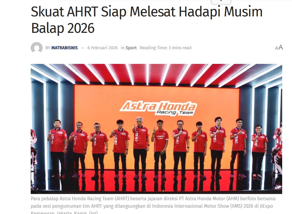 Skuat AHRT Siap Melesat Hadapi Musim Balap 2026 by Sri Yuliantiningsih 6 Februari 2026 in Silahkan kunjungi https://matrabisnis.id/2026/02/06/skuat-ahrt-siap-melesat-hadapi-musim-balap-2026/. You Might Like Regional Public Launching New ADV160 The SUV Pride Grand Launching New PCX 160 Truly Exceptional! Tetap hati-hati ya bro sist berkendara saat hujan.