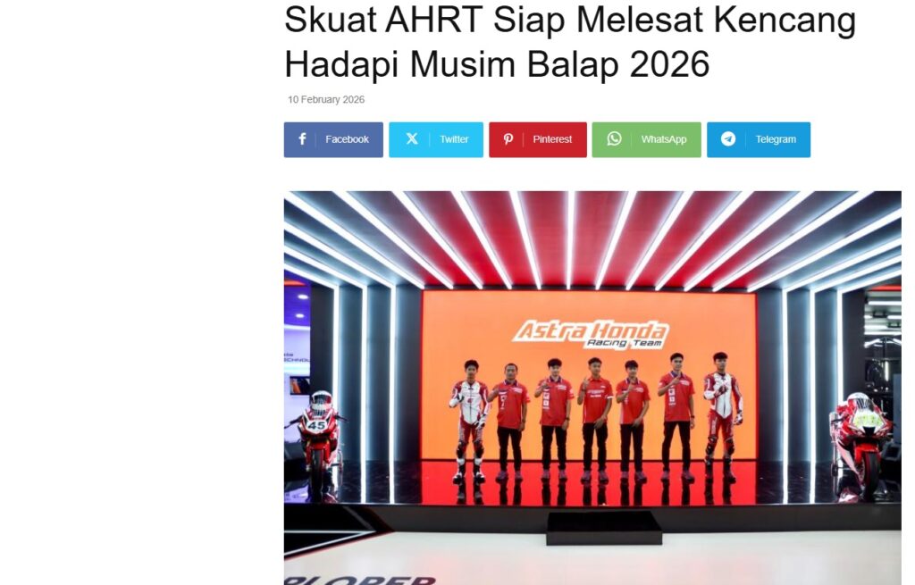 Skuat AHRT Siap Melesat Kencang Hadapi Musim Balap 2026 by Nova Sari 10 Februari 2026 in Silahkan kunjungi https://equator.co.id/skuat-ahrt-siap-melesat-kencang-hadapi-musim-balap-2026/. You Might Like Regional Public Launching New ADV160 The SUV Pride Grand Launching New PCX 160 Truly Exceptional! Tetap hati-hati ya bro sist berkendara saat hujan.