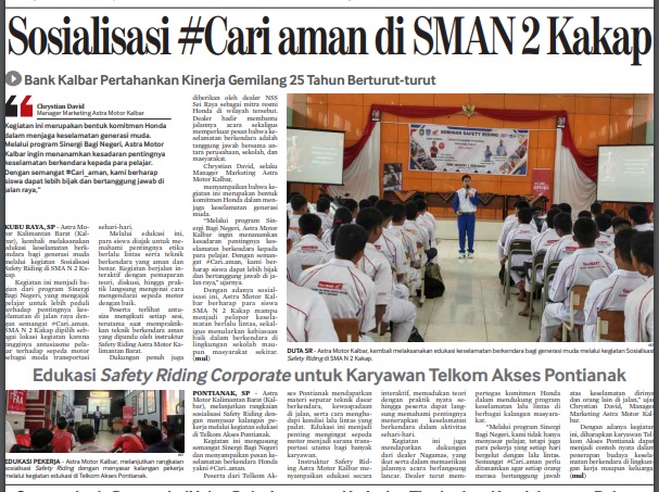 Sosialisasi #Cari aman di SMAN 2 Kakap, *Astra Motor Kalbar Ajak Kalangan Pelajar jadi Duta Keselamatan Bekendara by masmul 3 September 2025 in Silahkan buka . You Might Like Regional Public Launching New ADV160 The SUV Pride Grand Launching New PCX 160 Truly Exceptional! Tetap hati-hati ya bro sist berkendara saat hujan.