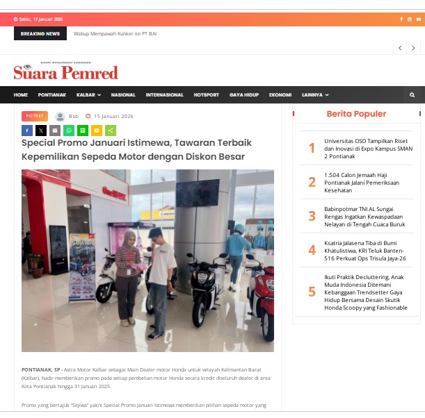 Special Promo Januari Istimewa, Tawaran Terbaik Kepemilikan Sepeda Motor dengan Diskon Besar by masmul 15 Januari 2026 in Silahkan kunjungi https://www.suarapemredkalbar.com/read/potret/15012026/special-promo-januari-istimewa-tawaran-terbaik-kepemilikan-sepeda-motor-dengan-diskon-besar. You Might Like Regional Public Launching New ADV160 The SUV Pride Grand Launching New PCX 160 Truly Exceptional! Tetap hati-hati ya bro sist berkendara saat hujan.