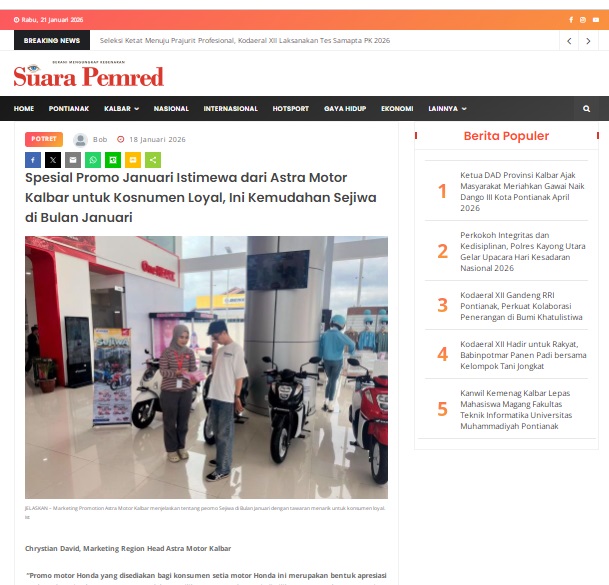 Spesial Promo Januari Istimewa dari Astra Motor Kalbar untuk Kosnumen Loyal, Ini Kemudahan Sejiwa di Bulan Januari by masmul 18 Januari 2026 in Silahkan kunjungi https://www.suarapemredkalbar.com/read/potret/18012026/spesial-promo-januari-istimewa-dari-astra-motor-kalbar-untuk-kosnumen-loyal-ini-kemudahan-sejiwa-di-bulan-januari. You Might Like Regional Public Launching New ADV160 The SUV Pride Grand Launching New PCX 160 Truly Exceptional! Tetap hati-hati ya bro sist berkendara saat hujan.