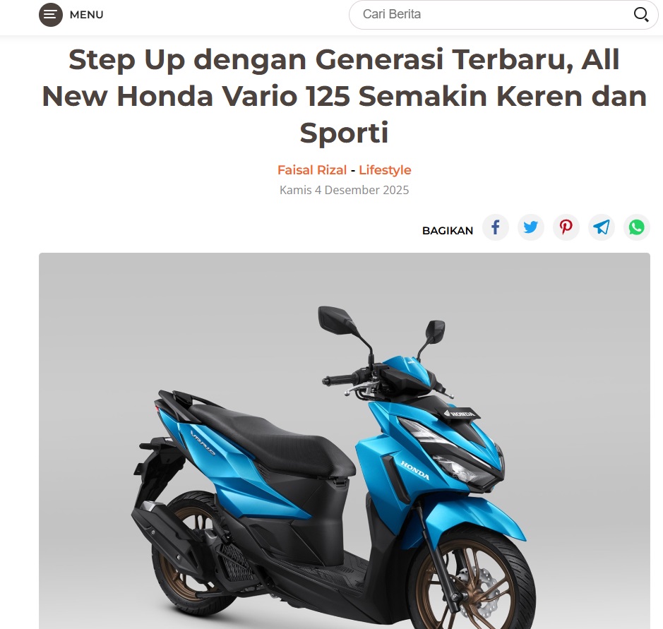 Step Up dengan Generasi Terbaru, All New Honda Vario 125 Semakin Keren dan Sporti by Dodi Dodi 4 Desember 2025 in Silahkan kunjungi https://harianberkat.com/2025/12/04/step-up-dengan-generasi-terbaru-all-new-honda-vario-125-semakin-keren-dan-sporti/. You Might Like Regional Public Launching New ADV160 The SUV Pride Grand Launching New PCX 160 Truly Exceptional! Tetap hati-hati ya bro sist berkendara saat hujan.