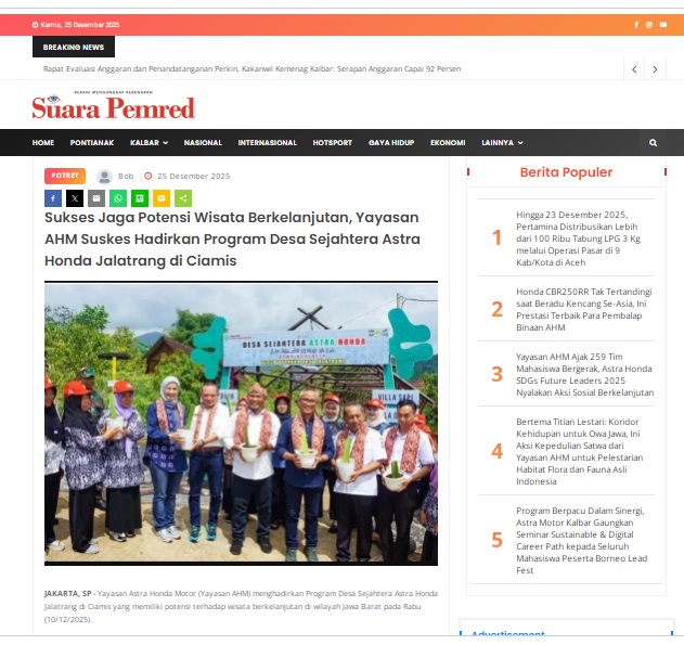 Sukses Jaga Potensi Wisata Berkelanjutan, Yayasan AHM Suskes Hadirkan Program Desa Sejahtera Astra Honda Jalatrang di Ciamis by masmul 25 Desember 2025 in Silahkan kunjungi https://www.suarapemredkalbar.com/read/potret/25122025/sukses-jaga-potensi-wisata-berkelanjutan-yayasan-ahm-suskes-hadirkan-program-desa-sejahtera-astra-honda-jalatrang-di-ciamis. You Might Like Regional Public Launching New ADV160 The SUV Pride Grand Launching New PCX 160 Truly Exceptional! Tetap hati-hati ya bro sist berkendara saat hujan.