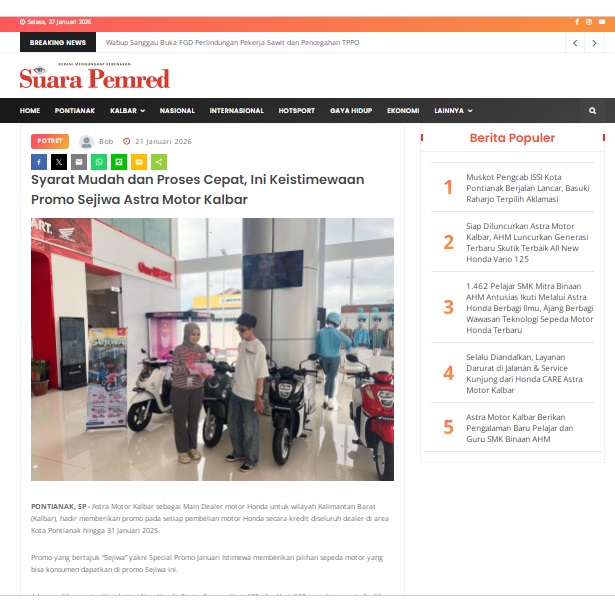 Syarat Mudah dan Proses Cepat, Ini Keistimewaan Promo Sejiwa Astra Motor Kalbar by masmul 21 Januari 2026 in Silahkan kunjungi https://www.suarapemredkalbar.com/read/potret/21012026/syarat-mudah-dan-proses-cepat-ini-keistimewaan-promo-sejiwa-astra-motor-kalbar. You Might Like Regional Public Launching New ADV160 The SUV Pride Grand Launching New PCX 160 Truly Exceptional! Tetap hati-hati ya bro sist berkendara saat hujan.
