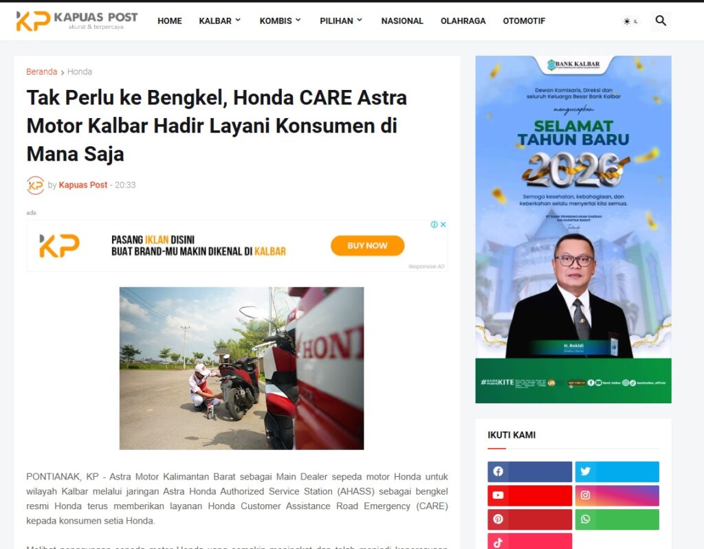 Tak Perlu ke Bengkel, Honda CARE Astra Motor Kalbar Hadir Layani Konsumen di Mana Saja by Muhammad Arif 14 Januari 2026 in Silahkan kunjungi https://www.kapuaspost.web.id/2026/01/tak-perlu-ke-bengkel-honda-care-astra.html. Tags: astra Astra Motor kalbar Astra Motor Pontianak astramotor honda kalbar pontianak sepeda motor You Might Like Regional Public Launching New ADV160 The SUV Pride Grand Launching New PCX 160 Truly Exceptional! Tetap hati-hati ya bro sist berkendara saat hujan.