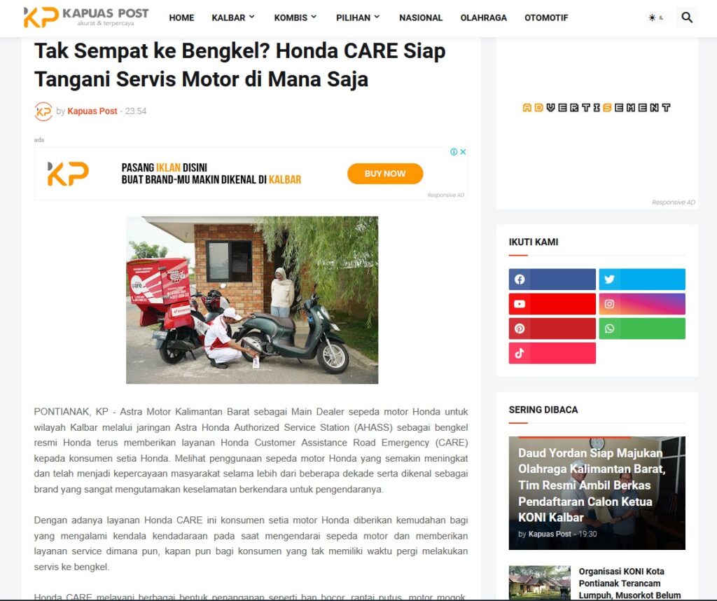 Tak Sempat ke Bengkel? Honda CARE Siap Tangani Servis Motor di Mana Saja by Muhammad Arif 23 November 2025 in Silahkan kunjungi https://www.kapuaspost.web.id/2025/11/tak-sempat-ke-bengkel-honda-care-siap.html. Tags: astra Astra Motor kalbar Astra Motor Pontianak astramotor honda kalbar pontianak sepeda motor You Might Like Regional Public Launching New ADV160 The SUV Pride Grand Launching New PCX 160 Truly Exceptional! Tetap hati-hati ya bro sist berkendara saat hujan.
