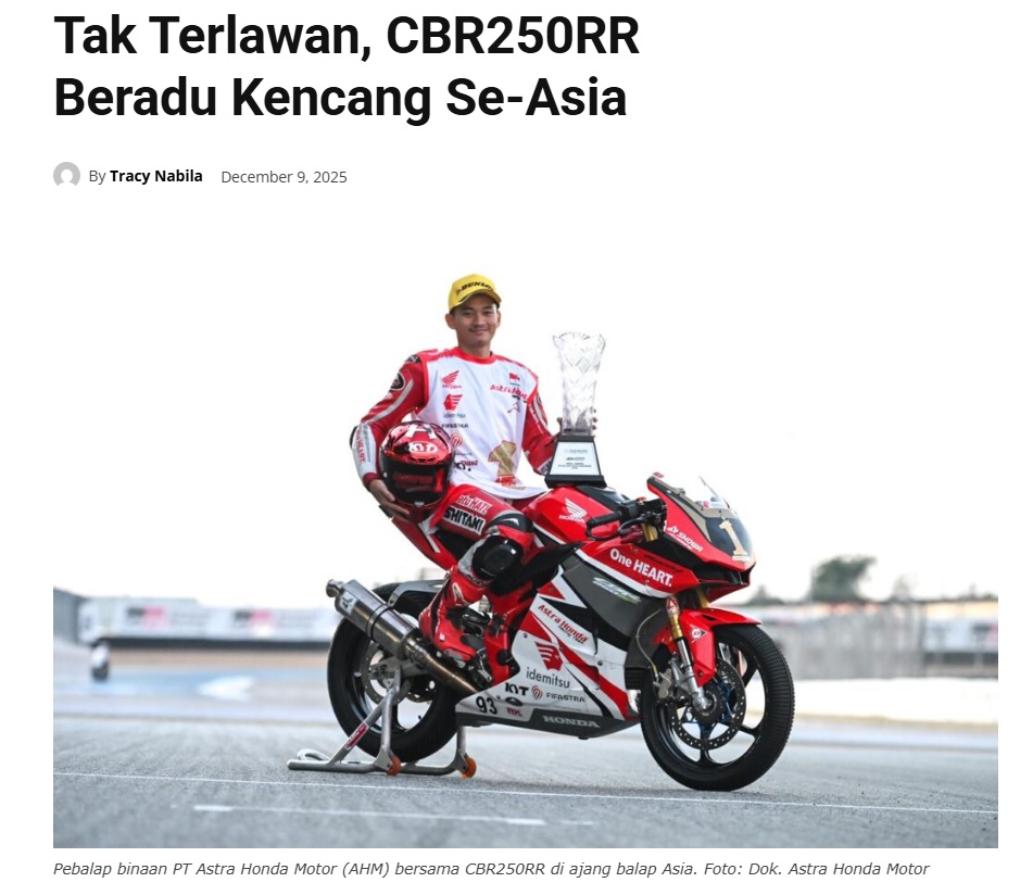 Tak Terlawan, CBR250RR Beradu Kencang Se-Asia by Leo Prima 9 Desember 2025 in Silahkan kunjungi https://pontianaktoday.id/tak-terlawan-cbr250rr-beradu-kencang-se-asia/. You Might Like Regional Public Launching New ADV160 The SUV Pride Grand Launching New PCX 160 Truly Exceptional! Tetap hati-hati ya bro sist berkendara saat hujan.