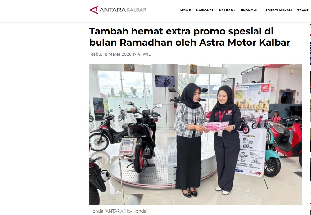 Tambah hemat extra promo spesial di bulan Ramadhan oleh Astra Motor Kalbar by Dedi 18 Maret 2026 in Silahkan kunjungi https://kalbar.antaranews.com/berita/694566/tambah-hemat-extra-promo-spesial-di-bulan-ramadhan-oleh-astra-motor-kalbar. You Might Like Regional Public Launching New ADV160 The SUV Pride Grand Launching New PCX 160 Truly Exceptional! Tetap hati-hati ya bro sist berkendara saat hujan.