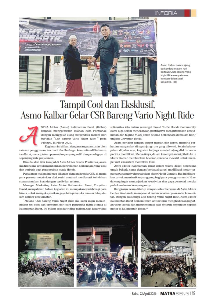 Tampil Cool dan Eksklusif, Asmo Kalbar Gelar CSR Bareng Vario Night Ride by Sri Yuliantiningsih 22 April 2026 in Silahkan buka . You Might Like Regional Public Launching New ADV160 The SUV Pride Grand Launching New PCX 160 Truly Exceptional! Tetap hati-hati ya bro sist berkendara saat hujan.