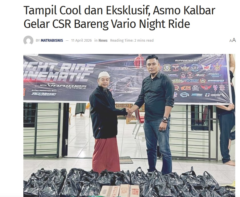 Tampil Cool dan Eksklusif, Asmo Kalbar Gelar CSR Bareng Vario Night Ride by Sri Yuliantiningsih 11 April 2026 in Silahkan kunjungi https://matrabisnis.id/2026/04/11/tampil-cool-dan-eksklusif-asmo-kalbar-gelar-csr-bareng-vario-night-ride/. You Might Like Regional Public Launching New ADV160 The SUV Pride Grand Launching New PCX 160 Truly Exceptional! Tetap hati-hati ya bro sist berkendara saat hujan.