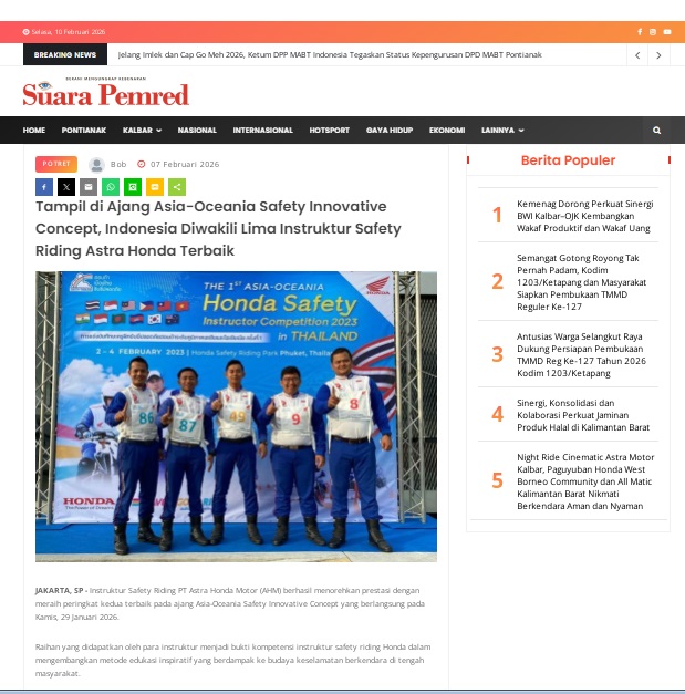 Tampil di Ajang Asia-Oceania Safety Innovative Concept, Indonesia Diwakili Lima Instruktur Safety Riding Astra Honda Terbaik by masmul 7 Februari 2026 in Silahkan kunjungi https://www.suarapemredkalbar.com/read/potret/07022026/tampil-di-ajang-asia-oceania-safety-innovative-concept-indonesia-diwakili-lima-instruktur-safety-riding-astra-honda-terbaik. You Might Like Regional Public Launching New ADV160 The SUV Pride Grand Launching New PCX 160 Truly Exceptional! Tetap hati-hati ya bro sist berkendara saat hujan.