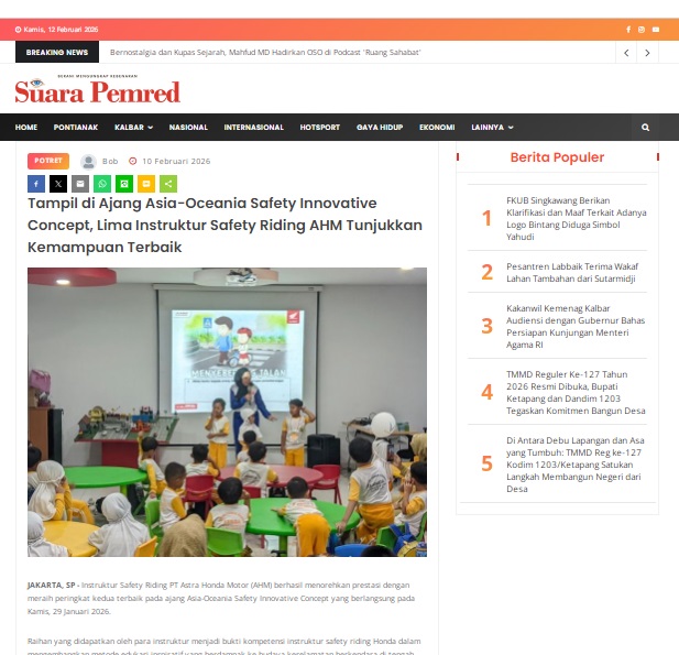 Tampil di Ajang Asia-Oceania Safety Innovative Concept, Lima Instruktur Safety Riding AHM Tunjukkan Kemampuan Terbaik by masmul 10 Februari 2026 in Silahkan kunjungi https://www.suarapemredkalbar.com/read/potret/10022026/tampil-di-ajang-asia-oceania-safety-innovative-concept-lima-instruktur-safety-riding-ahm-tunjukkan-kemampuan-terbaik. You Might Like Regional Public Launching New ADV160 The SUV Pride Grand Launching New PCX 160 Truly Exceptional! Tetap hati-hati ya bro sist berkendara saat hujan.