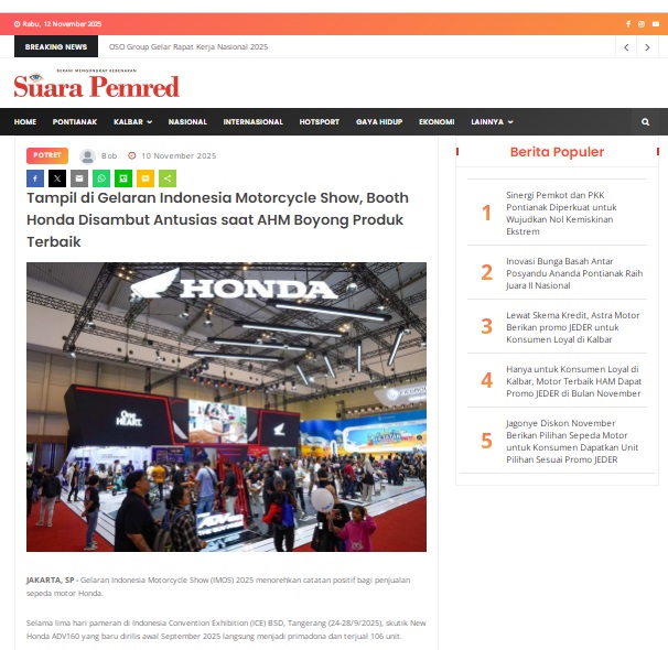 Tampil di Gelaran Indonesia Motorcycle Show, Booth Honda Disambut Antusias saat AHM Boyong Produk Terbaik by masmul 10 November 2025 in Silahkan kunjungi https://www.suarapemredkalbar.com/read/potret/10112025/tampil-di-gelaran-indonesia-motorcycle-show-booth-honda-disambut-antusias-saat-ahm-boyong-produk-terbaik. You Might Like Regional Public Launching New ADV160 The SUV Pride Grand Launching New PCX 160 Truly Exceptional! Tetap hati-hati ya bro sist berkendara saat hujan.