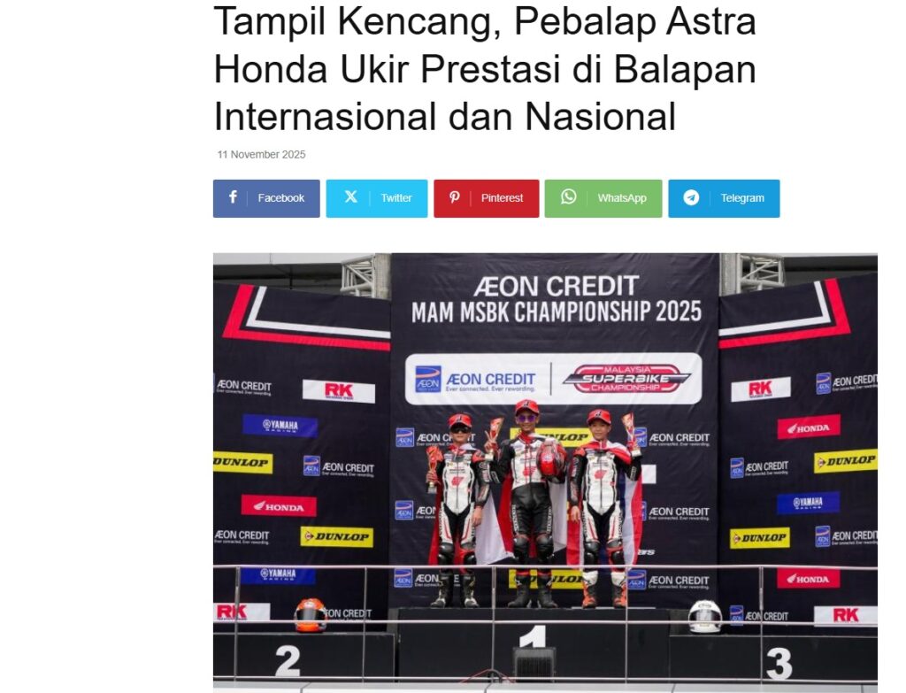 Tampil Kencang, Pebalap Astra Honda Ukir Prestasi di Balapan Internasional dan Nasional by Nova Sari 11 November 2025 in Silahkan kunjungi https://equator.co.id/tampil-kencang-pebalap-astra-honda-ukir-prestasi-di-balapan-internasional-dan-nasional/. You Might Like Regional Public Launching New ADV160 The SUV Pride Grand Launching New PCX 160 Truly Exceptional! Tetap hati-hati ya bro sist berkendara saat hujan.