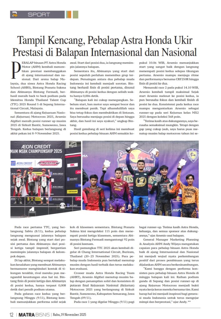 Tampil Kencang, Pebalap Astra Honda Ukir Prestasi di Balapan Internasional dan Nasional by Sri Yuliantiningsih 19 November 2025 in Silahkan buka . You Might Like Regional Public Launching New ADV160 The SUV Pride Grand Launching New PCX 160 Truly Exceptional! Tetap hati-hati ya bro sist berkendara saat hujan.