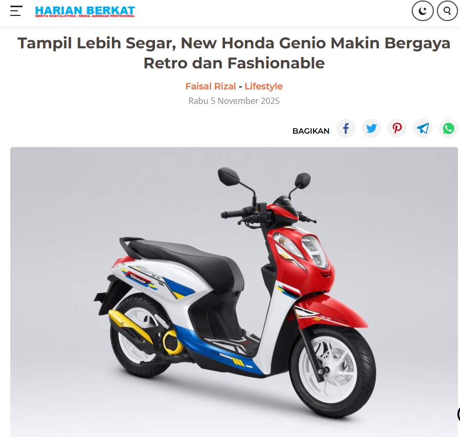 Tampil Lebih Segar, New Honda Genio Makin Bergaya Retro dan Fashionable by Dodi Dodi 5 November 2025 in Silahkan kunjungi https://harianberkat.com/2025/11/05/tampil-lebih-segar-new-honda-genio-makin-bergaya-retro-dan-fashionable/#google_vignette. You Might Like Regional Public Launching New ADV160 The SUV Pride Grand Launching New PCX 160 Truly Exceptional! Tetap hati-hati ya bro sist berkendara saat hujan.