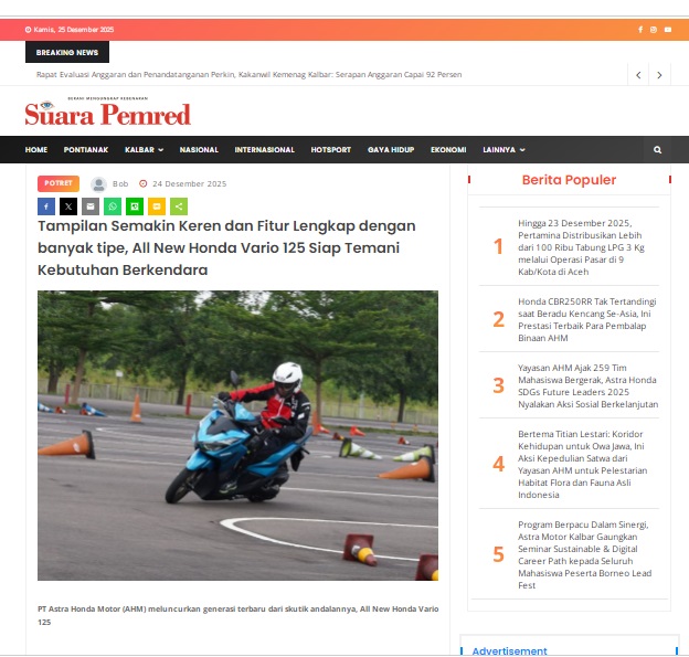 Tampilan Semakin Keren dan Fitur Lengkap dengan banyak tipe, All New Honda Vario 125 Siap Temani Kebutuhan Berkendara by masmul 24 Desember 2025 in Silahkan kunjungi https://www.suarapemredkalbar.com/read/potret/24122025/tampilan-semakin-keren-dan-fitur-lengkap-dengan-banyak-tipe-all-new-honda-vario-125-siap-temani-kebutuhan-berkendara. You Might Like Regional Public Launching New ADV160 The SUV Pride Grand Launching New PCX 160 Truly Exceptional! Tetap hati-hati ya bro sist berkendara saat hujan.