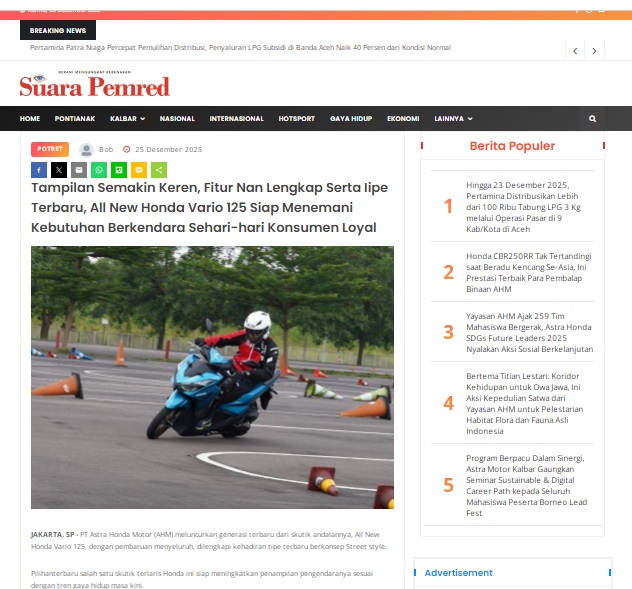 Tampilan Semakin Keren, Fitur Nan Lengkap Serta Iipe Terbaru, All New Honda Vario 125 Siap Menemani Kebutuhan Berkendara Sehari-hari Konsumen Loyal by masmul 25 Desember 2025 in Silahkan kunjungi https://www.suarapemredkalbar.com/read/potret/25122025/tampilan-semakin-keren-fitur-nan-lengkap-serta-iipe-terbaru-all-new-honda-vario-125-siap-menemani-kebutuhan-berkendara-sehari-hari-konsumen-loyal. You Might Like Regional Public Launching New ADV160 The SUV Pride Grand Launching New PCX 160 Truly Exceptional! Tetap hati-hati ya bro sist berkendara saat hujan.