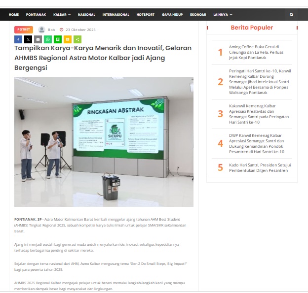 Tampilkan Karya-Karya Menarik dan Inovatif, Gelaran AHMBS Regional Astra Motor Kalbar jadi Ajang Bergengsi by masmul 23 Oktober 2025 in Silahkan kunjungi https://www.suarapemredkalbar.com/read/potret/23102025/tampilkan-karya-karya-menarik-dan-inovatif-gelaran-ahmbs-regional-astra-motor-kalbar-jadi-ajang-bergengsi. You Might Like Regional Public Launching New ADV160 The SUV Pride Grand Launching New PCX 160 Truly Exceptional! Tetap hati-hati ya bro sist berkendara saat hujan.