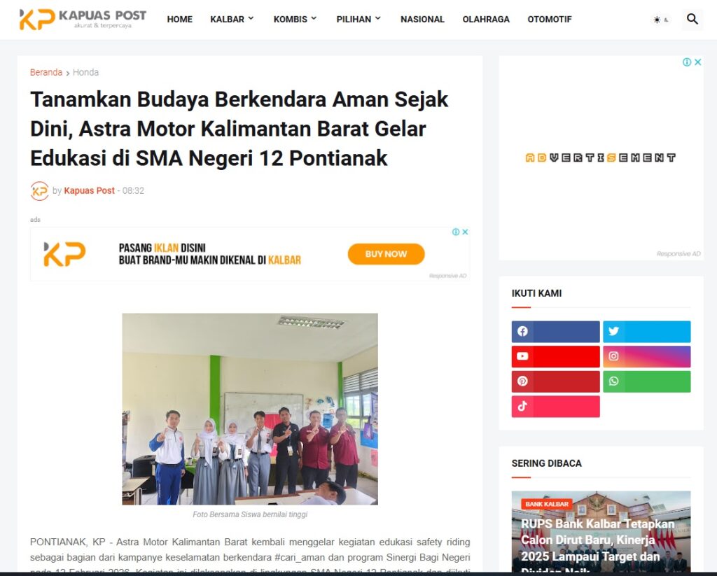 Tanamkan Budaya Berkendara Aman Sejak Dini, Astra Motor Kalimantan Barat Gelar Edukasi di SMA Negeri 12 Pontianak by Muhammad Arif 23 Februari 2026 in Silahkan kunjungi https://www.kapuaspost.web.id/2026/02/tanamkan-budaya-berkendara-aman-sejak.html. Tags: astra Astra Motor kalbar Astra Motor Pontianak astramotor honda kalbar pontianak sepeda motor You Might Like Regional Public Launching New ADV160 The SUV Pride Grand Launching New PCX 160 Truly Exceptional! Tetap hati-hati ya bro sist berkendara saat hujan.