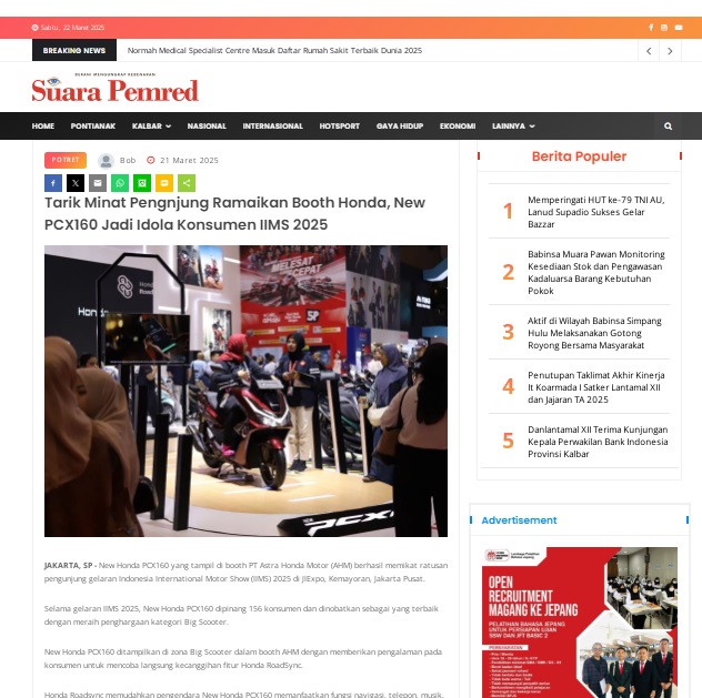 Tarik Minat Pengnjung Ramaikan Booth Honda, New PCX160 Jadi Idola Konsumen IIMS 2025 by masmul 21 Maret 2025 in Silahkan kunjungi https://www.suarapemredkalbar.com/read/potret/21032025/tarik-minat-pengnjung-ramaikan-booth-honda-new-pcx160-jadi-idola-konsumen-iims-2025. You Might Like Regional Public Launching New ADV160 The SUV Pride Grand Launching New PCX 160 Truly Exceptional! Tetap hati-hati ya bro sist berkendara saat hujan.
