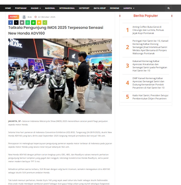 Tatkala Pengunjung IMOS 2025 Terpesona Sensasi New Honda ADV160 by masmul 22 Oktober 2025 in Silahkan kunjungi https://www.suarapemredkalbar.com/read/potret/22102025/tatkala-pengunjung-imos-2025-terpesona-sensasi-new-honda-adv160. You Might Like Regional Public Launching New ADV160 The SUV Pride Grand Launching New PCX 160 Truly Exceptional! Tetap hati-hati ya bro sist berkendara saat hujan.