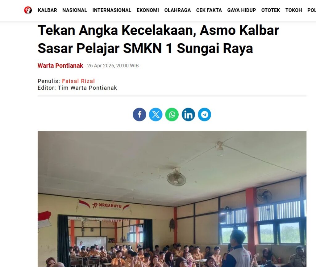 Tekan Angka Kecelakaan, Asmo Kalbar Sasar Pelajar SMKN 1 Sungai Raya by Faisal Rizal 26 April 2026 in Silahkan kunjungi https://wartapontianak.pikiran-rakyat.com/gaya-hidup/pr-11710166270/tekan-angka-kecelakaan-asmo-kalbar-sasar-pelajar-smkn-1-sungai-raya. You Might Like Regional Public Launching New ADV160 The SUV Pride Grand Launching New PCX 160 Truly Exceptional! Tetap hati-hati ya bro sist berkendara saat hujan.