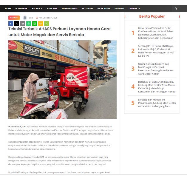 Teknisi Terbaik AHASS Perkuat Layanan Honda Care untuk Motor Mogok dan Servis Berkala by masmul 1 Oktober 2025 in Silahkan kunjungi https://www.suarapemredkalbar.com/read/potret/01102025/teknisi-terbaik-ahass-perkuat-layanan-honda-care-untuk-motor-mogok-dan-servis-berkala. You Might Like Regional Public Launching New ADV160 The SUV Pride Grand Launching New PCX 160 Truly Exceptional! Tetap hati-hati ya bro sist berkendara saat hujan.